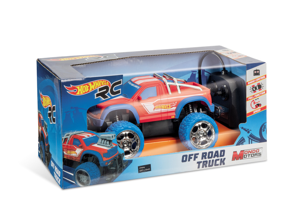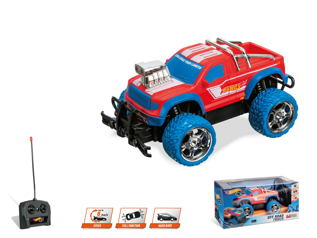 - Offroad RC auto Hot Wheels. Autíčko dokáže vyvinout rychlost až 8 km/h. Určeno pro děti 3 let. Auto vyžaduje 3× AA baterie a dálkové ovládání 2× AA baterie (nejsou součástí balení).