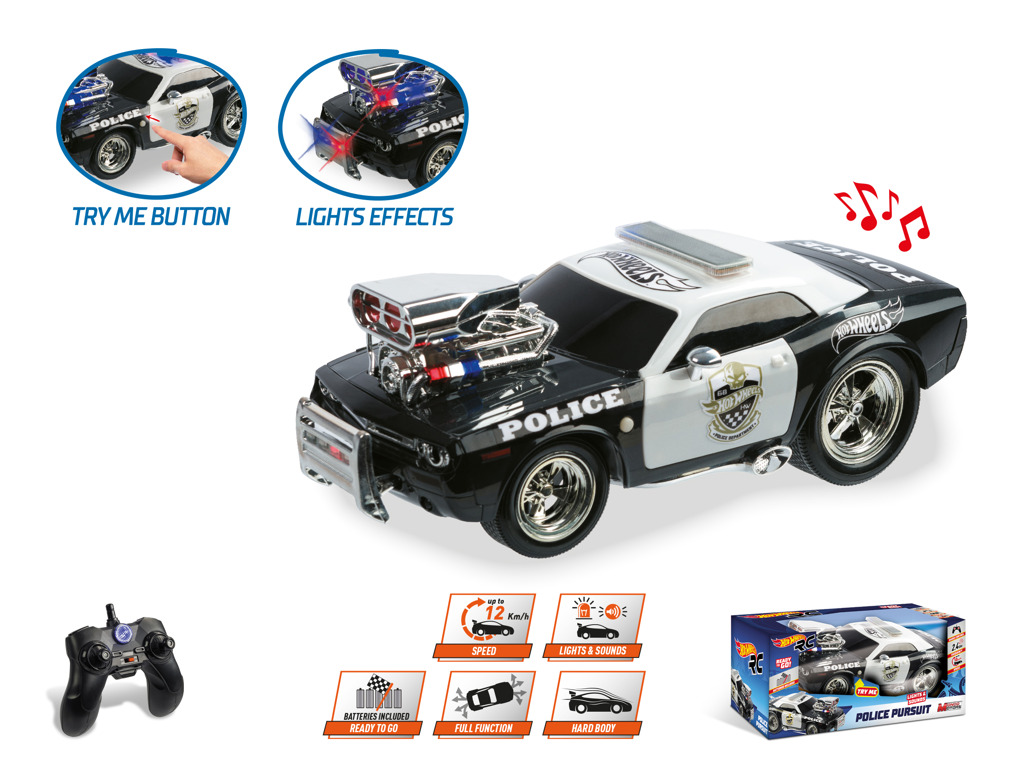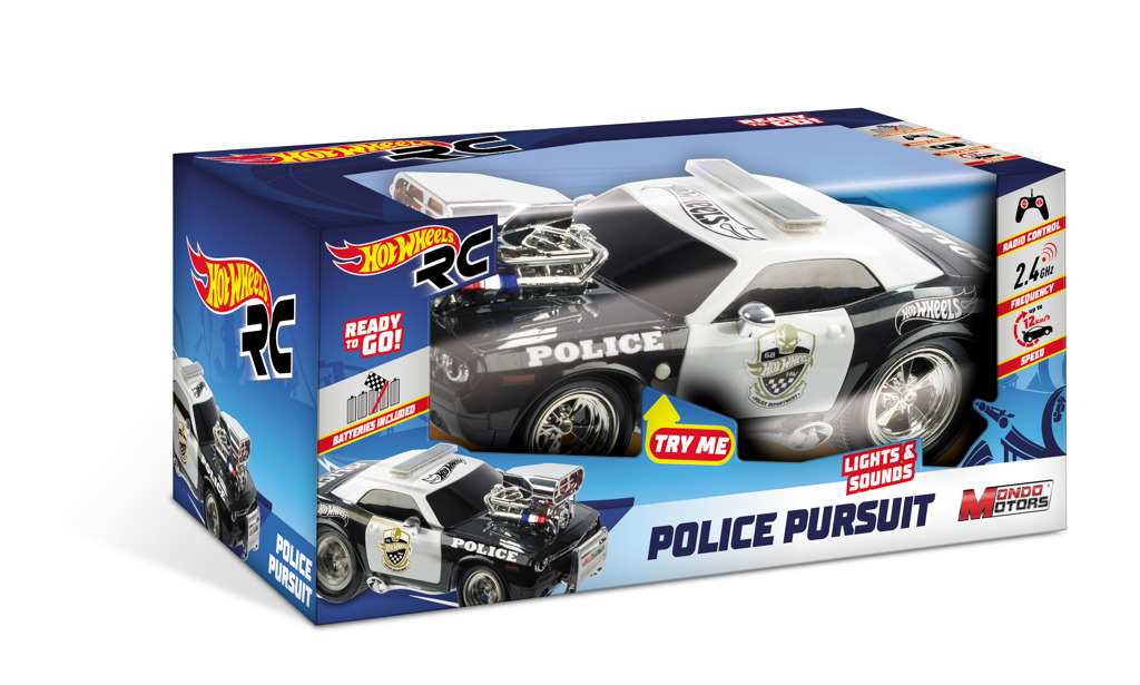 - RC policejní auto Hot Wheels se světelnými a zvukovými efekty. Autíčko dokáže vyvinout rychlost až 12 km/h. Vhodné pro děti od 6 let. Auto vyžaduje 4× AA baterie (jsou součástí balení) a dálkové ovládání vyžaduje 2× AA baterie (nejsou součástí balení).
