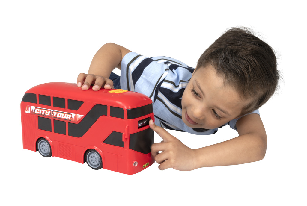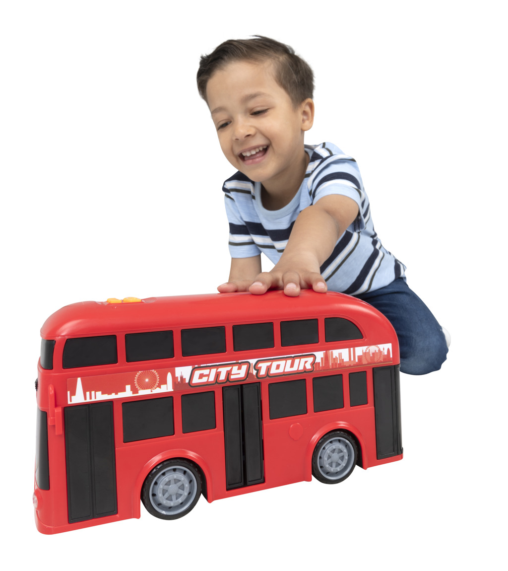 - Londýnský autobus double decker, který svítí a vydává zvuky. Výrobek vyžaduje 3× AAA baterie. Vhodný pro děti od 3 let.