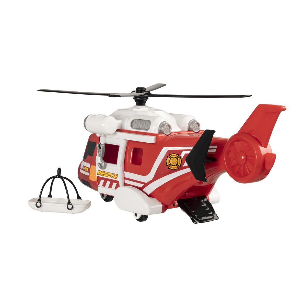 - Teamsterz hasičská helikoptéra se světelnými a zvukovými efekty. Helikoptéra má nosítka, ručně ovládaný naviják a otevírací boční dvěřě. Vhodné pro děti od 3 let. Výrobek vyžaduje 3× AAA baterie, které jsou součástí balení.