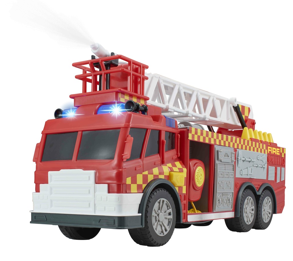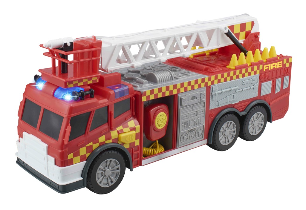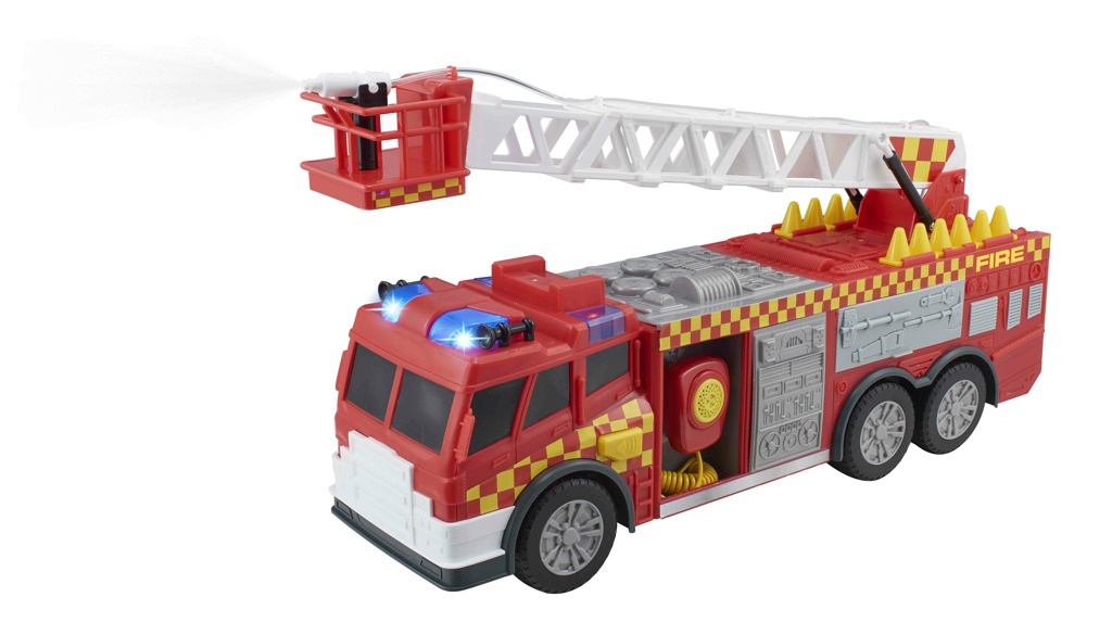 - Teamsterz hasičský vůz se světelnými a zvukovými efekty. Na voze je výsuvný, manuálně ovládaný žebřík, který se může otočit o 360°. Vysílač slouží jako mikrofon. Vodní pistole s ručním ovládáním. Vhodné pro děti od 3 let. Výrobek vyžaduje 3× AAA baterie, které jsou součástí balení.