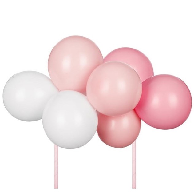 Dortová balónková dekorace v růžovo-bílé barvě.