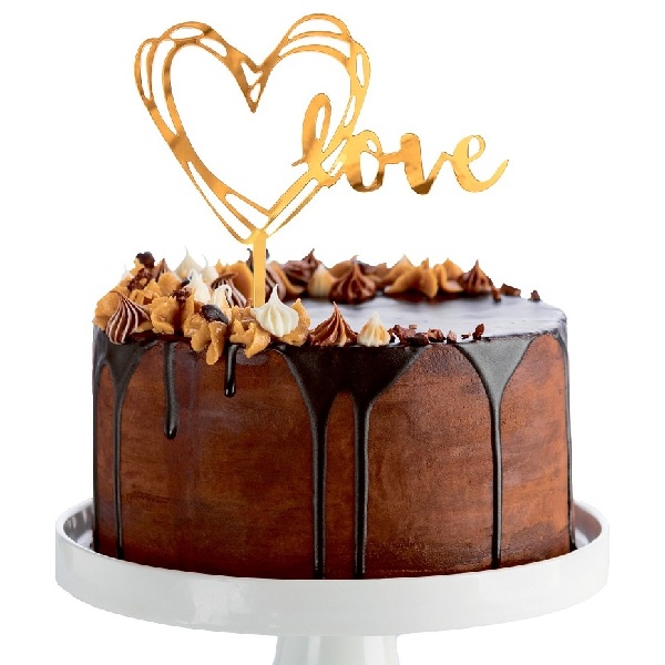 S touto dekorací na dort v podobě srdíčka a s nápisem Love ve zlaté barvě se každý dort stane jedinečným zážitkem.