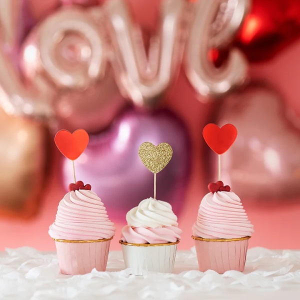 Zápichy na dort nebo cupcakes v podobě červených srdíček budou skvělým doplňkem k jejich výzdobě.
