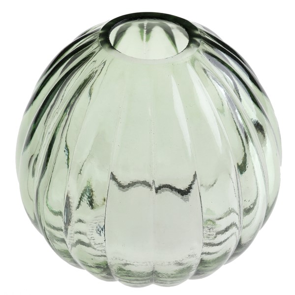 Kulatá vázička má krásnou průhlednou eukalyptovou barvu.