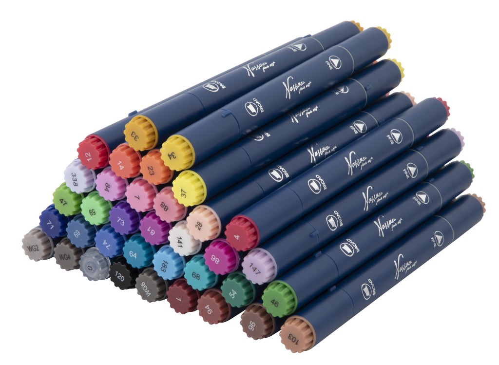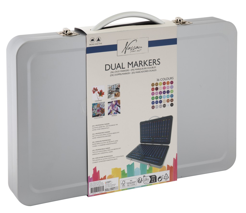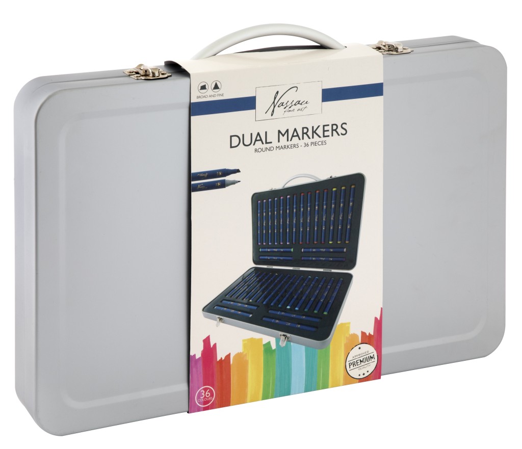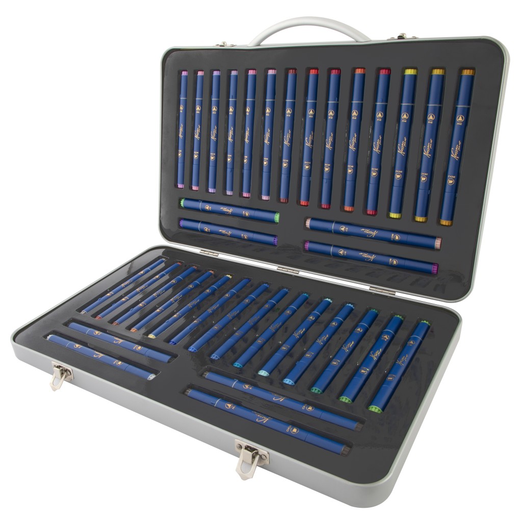 - Oboustranné fixy 36 ks v kovovemé kufříku – profesionální fixy.