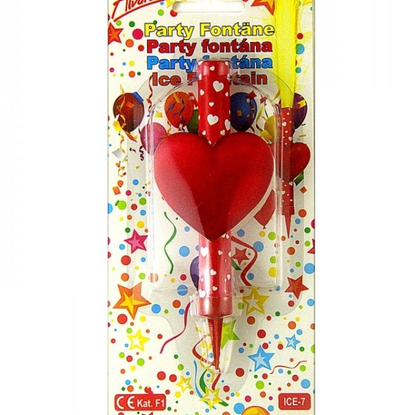 Návod k použití: červeným plastovým hrotem zapíchnout do dortu a opačnou stranu (papírové těsnění fontány na její vrchní části) zapalte. Doba hoření je cca 45 vteřin.