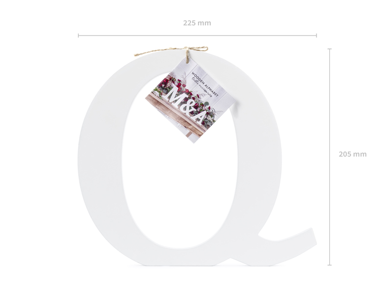 Dřevěné písmeno Q, bílé, 22.5x20.5cm