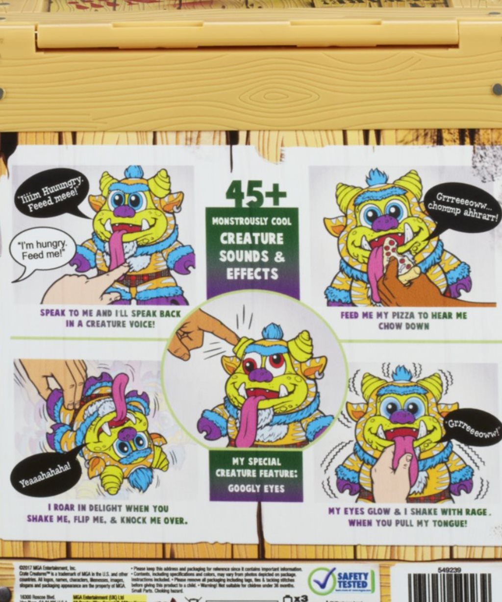 - Příšerka má jedinečné balení, je třeba odemknout zámek a uvolnit ji z klece. Klec lze opětovně zavřít. Příšerky umí více než 45 zvuků: