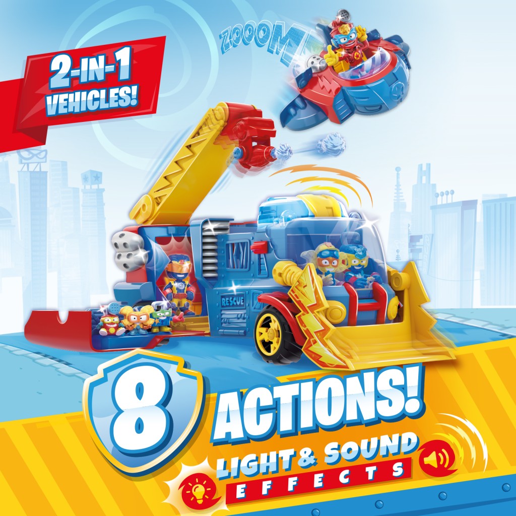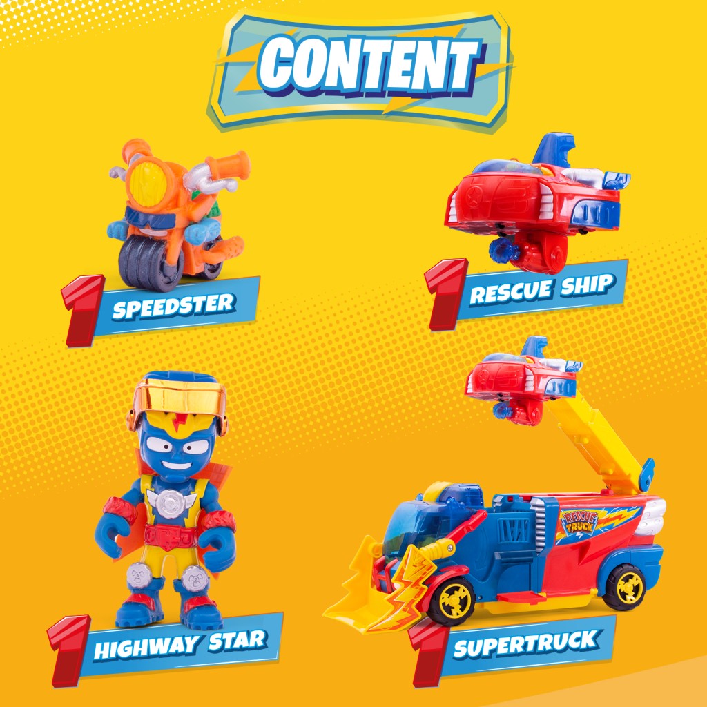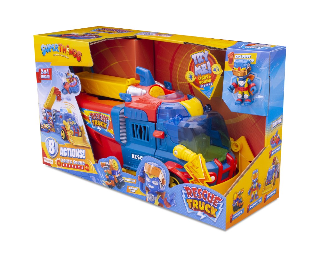 - Figurka SuperThings S – Záchranářský kamion – Díky záchrannému vozidlu budou moci SuperThings a Kazoom Kids vyrazit na tísňové volání každého obyvatele města Kaboom. Exluzivní postavy – obsahuje 1 exkluzivní Kazoom Kid a 1 SuperThing.