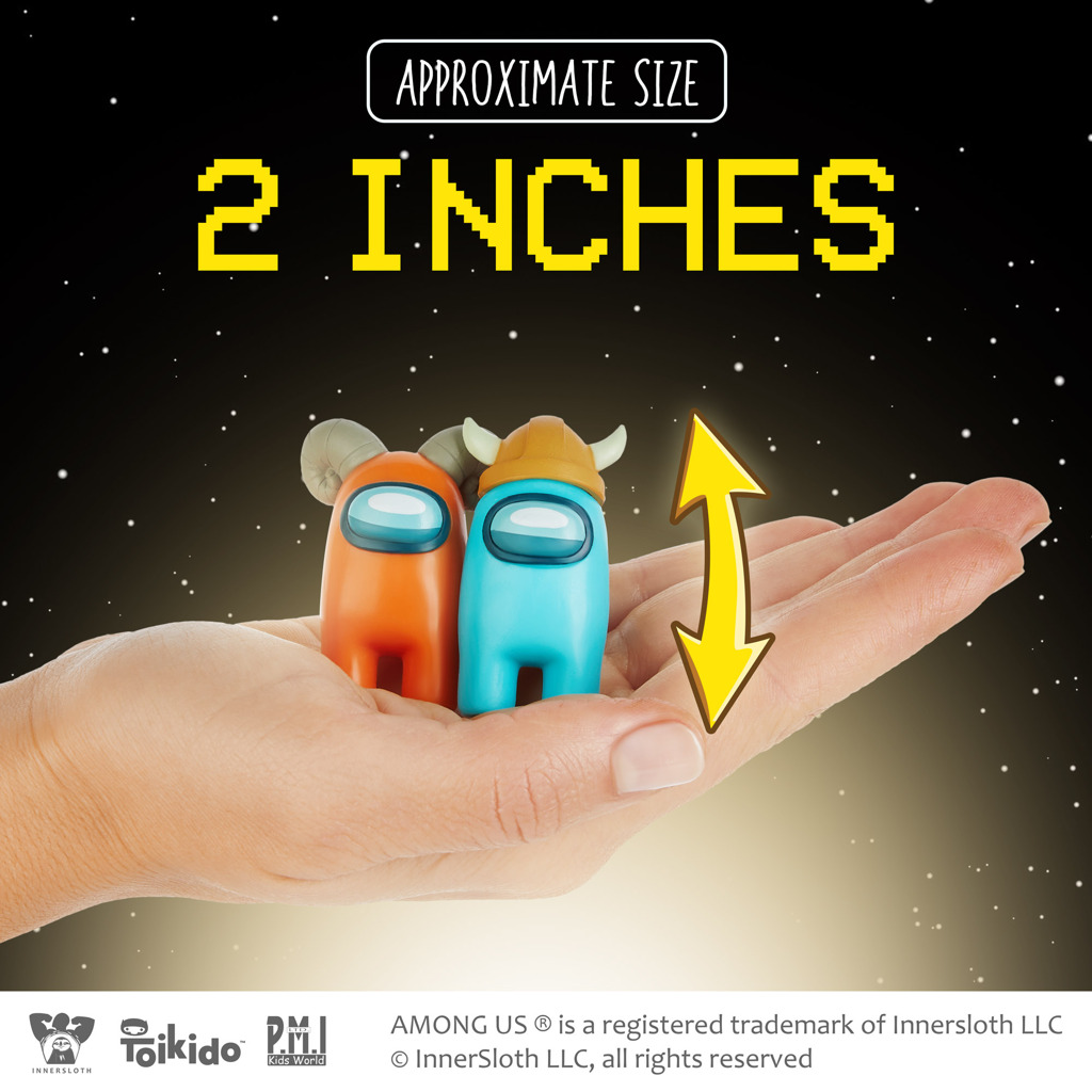 - 8 figurek populární licence Among Us deluxe box. 2 figurky v balení nejsou vidět. Součástí balení jsou 5 náhradních pokrývek hlavy. Vhodné pro děti od 3 let.