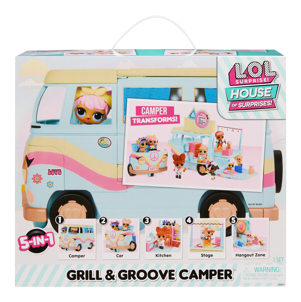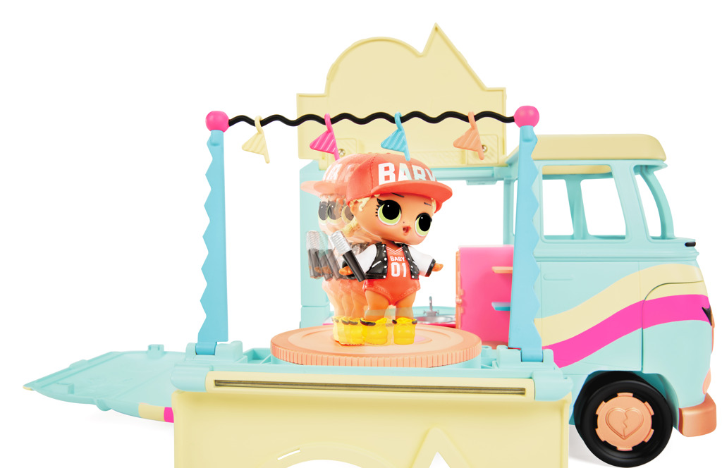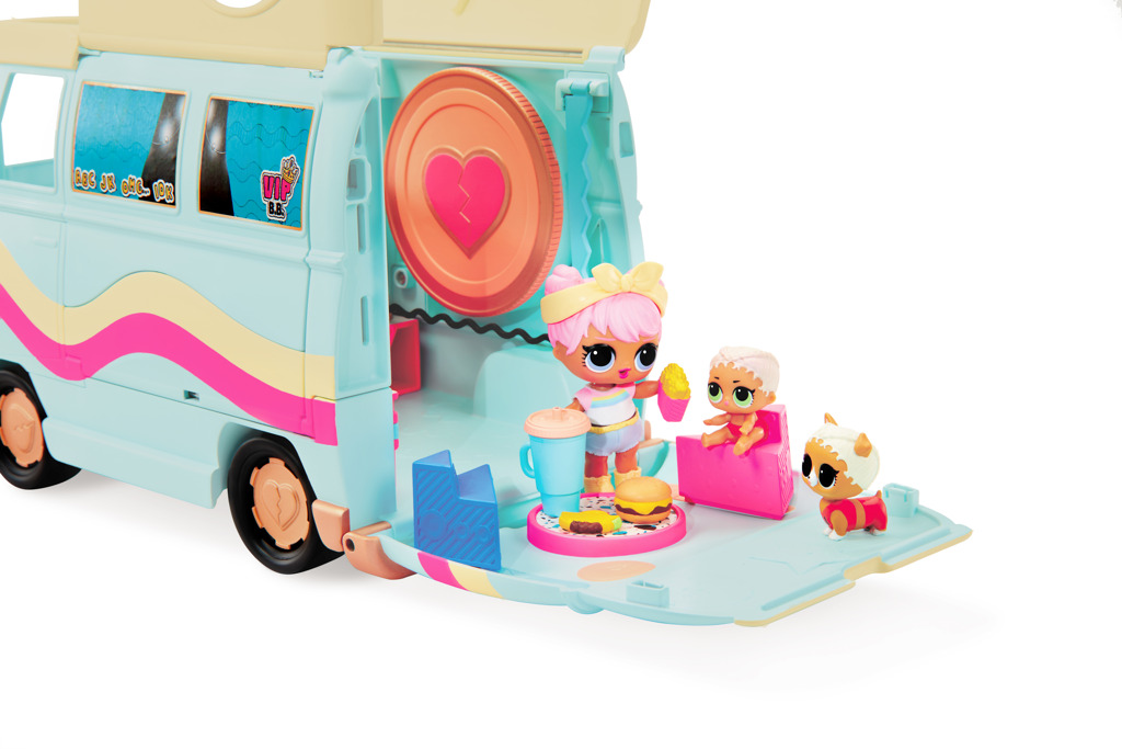 - L.O.L. Surprise! Minibus tě překvapí novým tvarem a tím, co s ním můžeš zažít za dobrodružství. Lze použít ke hře jako pojízdný bufet, jídelnu, samostatný karavan, auto, stage či herní zónu s tanečním parketem.