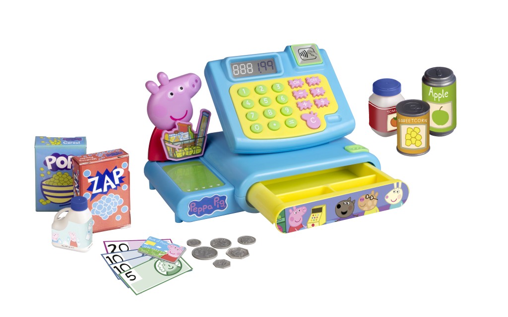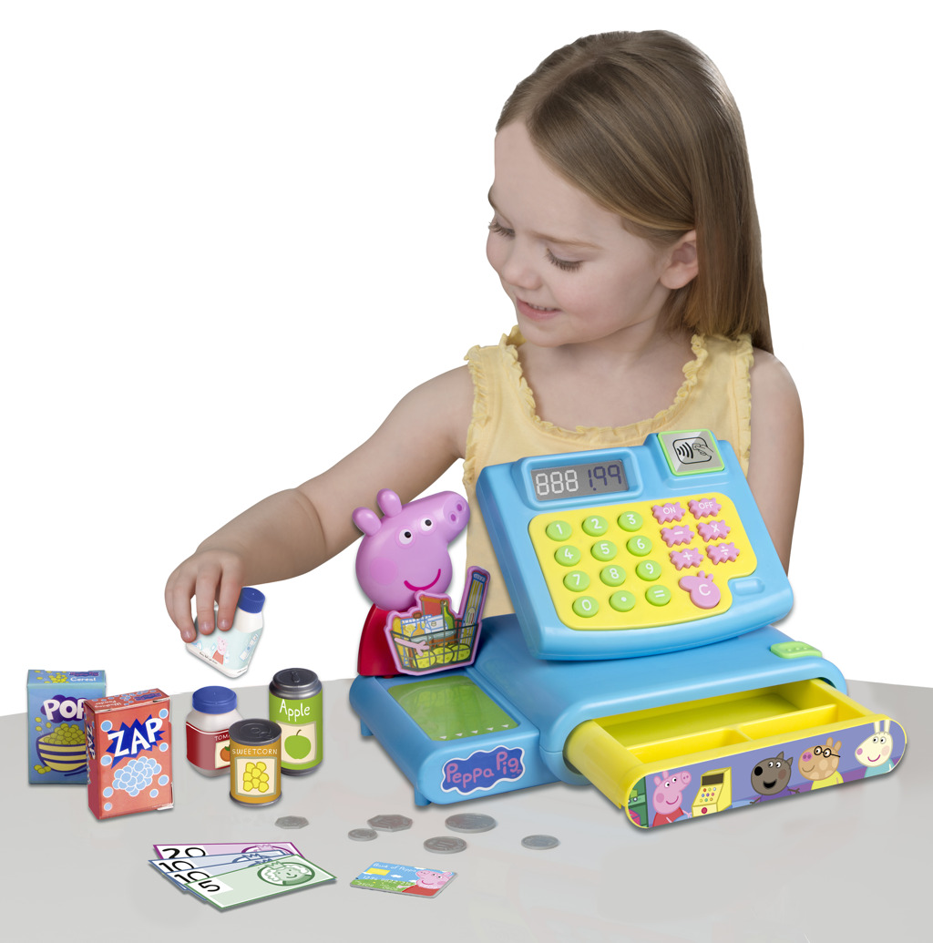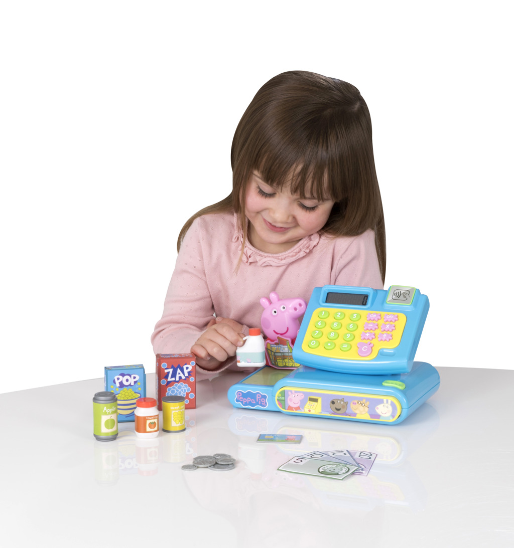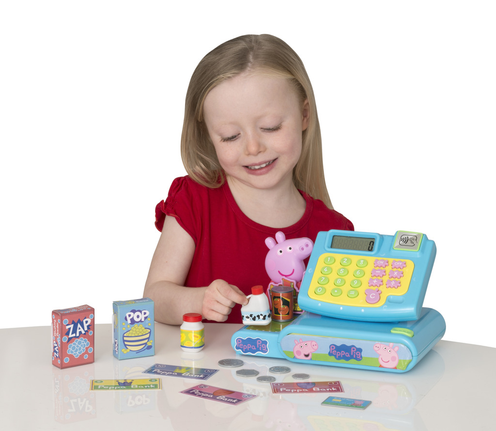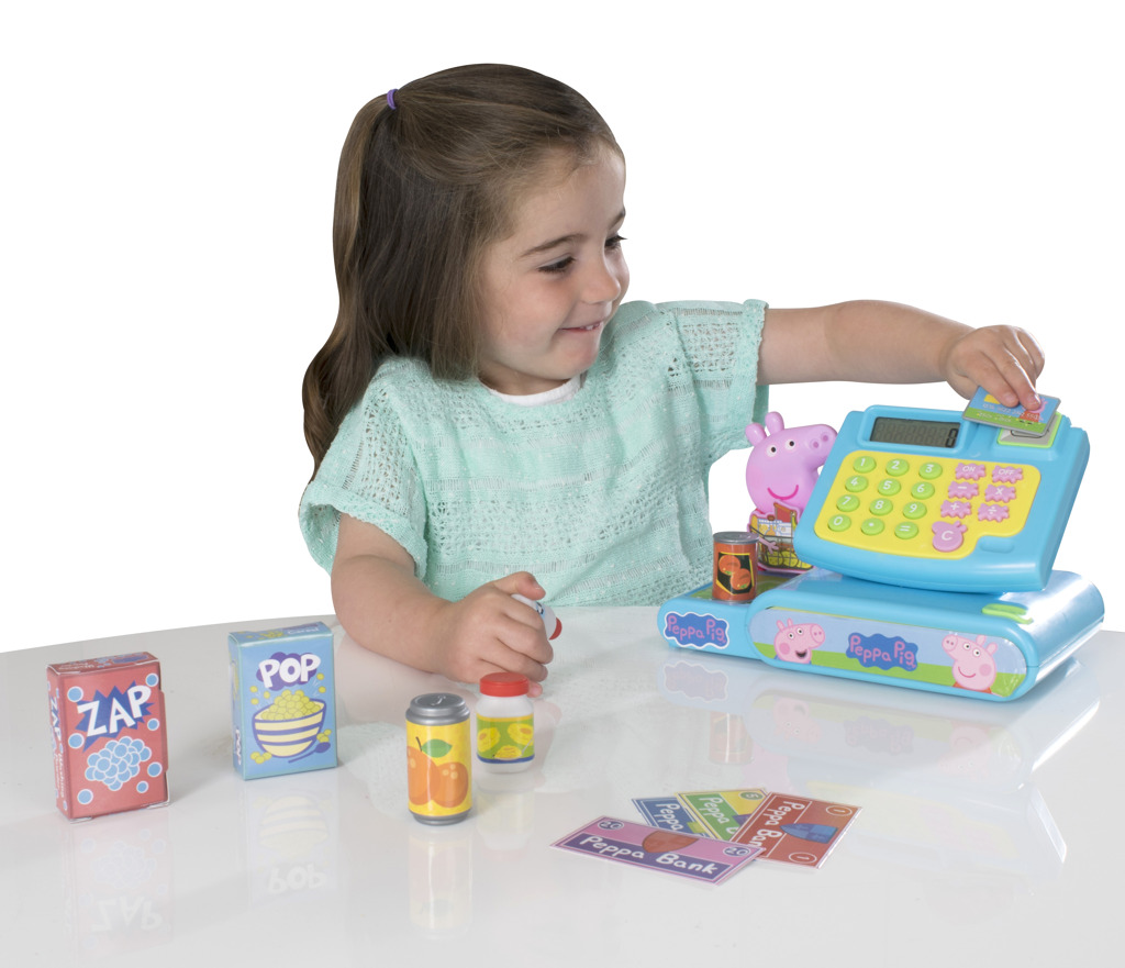 - Pokladna s oblíbeným motivem prasátka Peppy. Součástí pokladny je funkční kalkulačka, scanner a platit můžete Pepinými penězi nebo platební kartou. Provoz na 2× AAA baterie – součástí balení. Vhodné od 3 let.