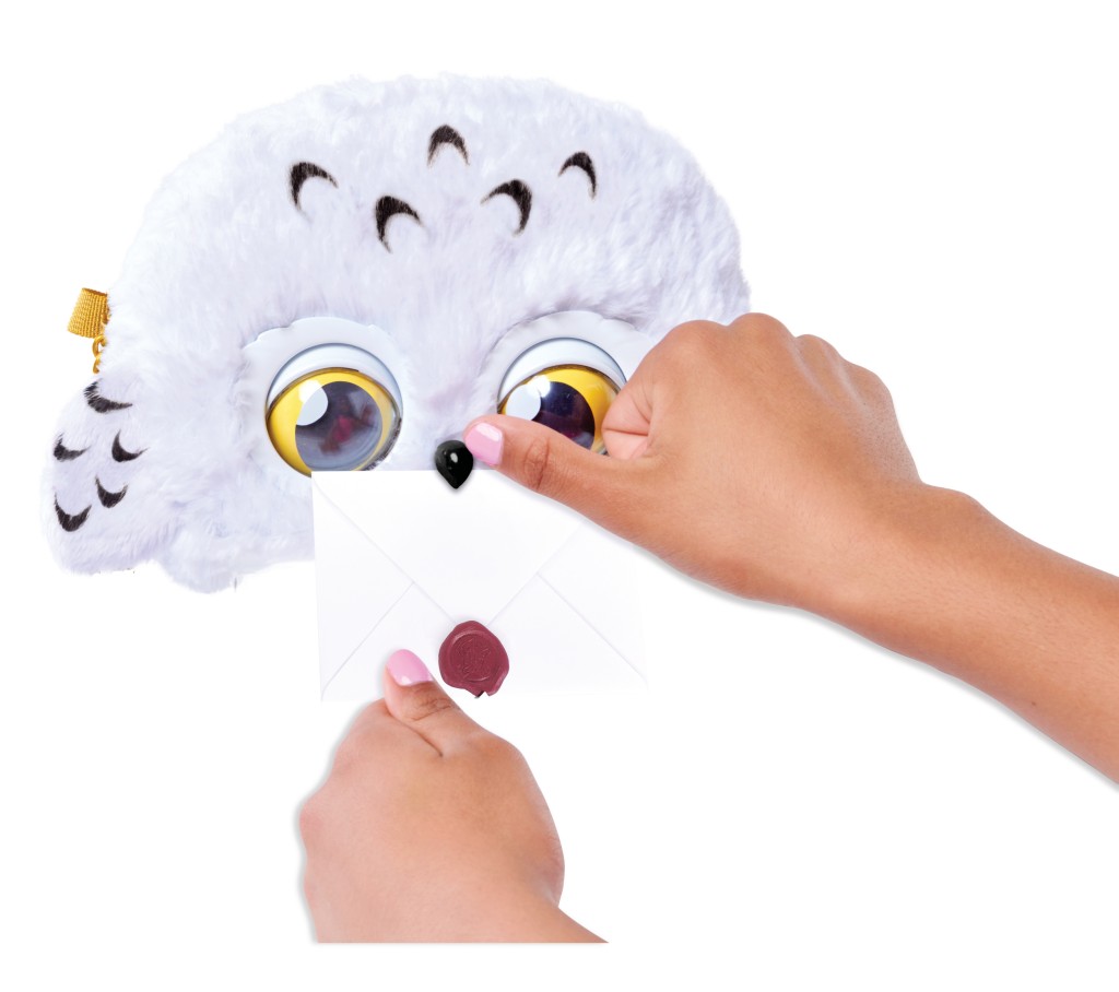 - Interaktivní kabelka Hedvika v podobě sněžné sovy ze světa Harryho Pottera má veliké zlaté mrkací oči, které reagují na dotykový senzor. Pomocí dalších dotyků aktivuj více než 30 různých zvuků a reakcí. Je vyrobena z měkkého skvrnitého plyše se spoustou krásných módních detailů. Vhodné od 6 let.