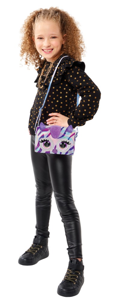 - Interaktivní kabelka Zebra má veliké mrkací oči, které reagují na dotykový senzor. Pomocí dalších dotyků aktivuj až 30 různých zvuků a reakcí. Je vyrobená z lesklé stříbrné lakované látky s měňavými fialovými pruhy, má nadýchanou hřívu, kovové doplňky a nastavitelný popruh. Velikost 11 × 16 × 6,5 cm. Vhodné od 5 let.