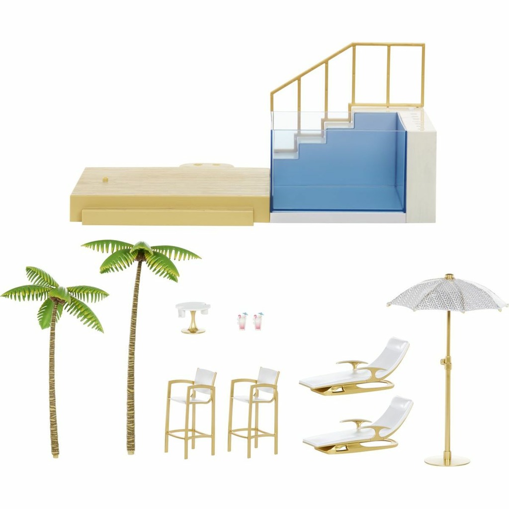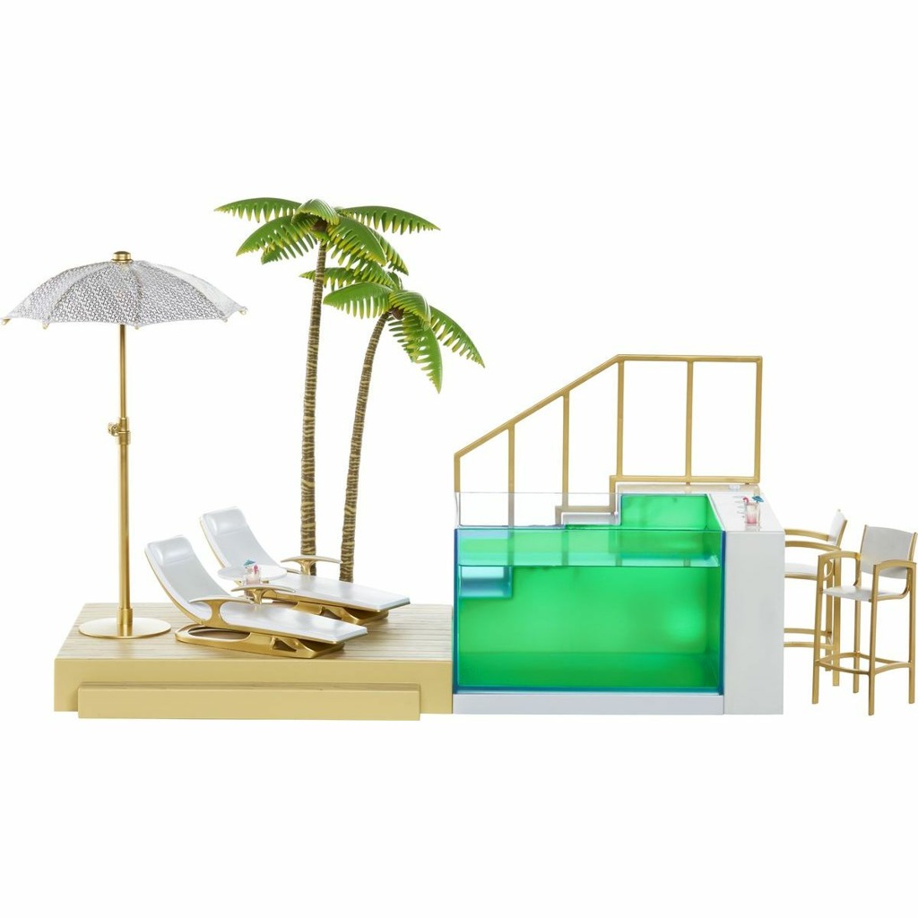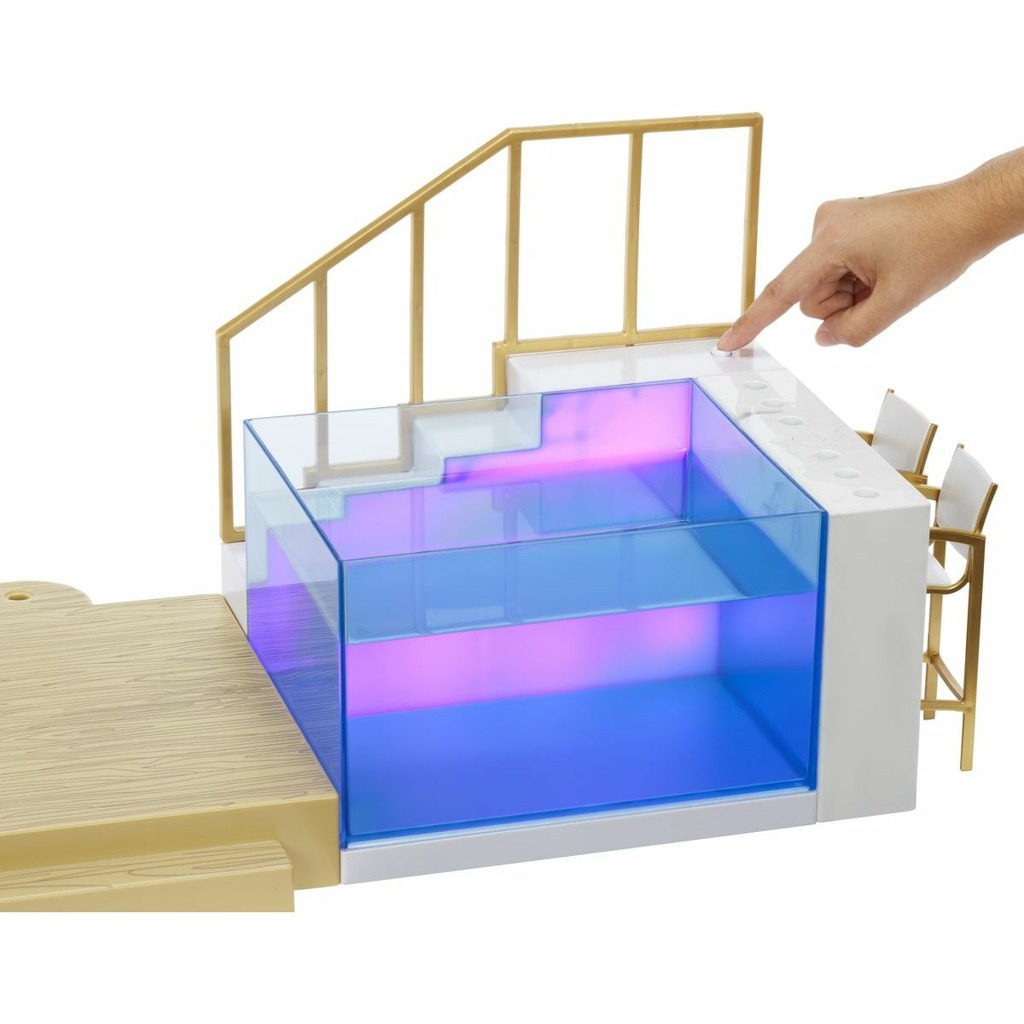 - Dívky z Rainbow High školy jsou připraveny vyrazit na sluníčko a ponořit se do úžasného bazénu, který mění barvy. Bazén se rozzáří barvami duhy a vytvoří scénu pro neopakovatelnou letní párty Rainbow High. Napuštění a vypuštění bazénu je úplně jednoduché. A samozřejmě u něj najdete různé nezbytné plážové doplňky.