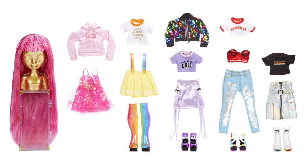 - V Módním salónu najdeš exkluzivní Fashion panenku, které můžeš vybrat stylový duhový outfit podle vlastní fantazie. V balení najdeš více než 10 módních kousků a 4 páry bot, pomocí kterých vytvoříš více než 300 fashion kombinací. Oblečky pověsíš na luxusní zlatou šatní tyč. Změň panence i účes, balení obsahuje 2 paruky.