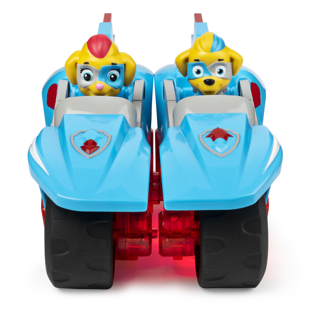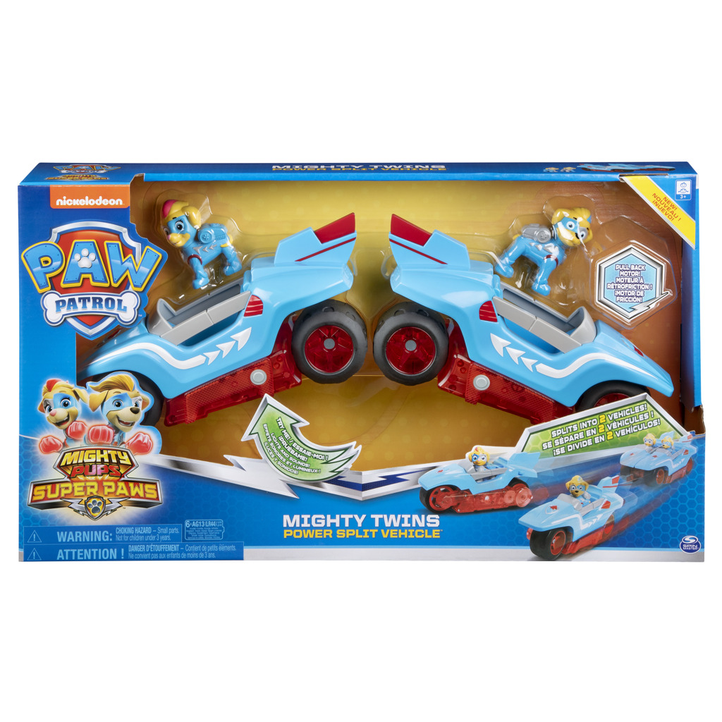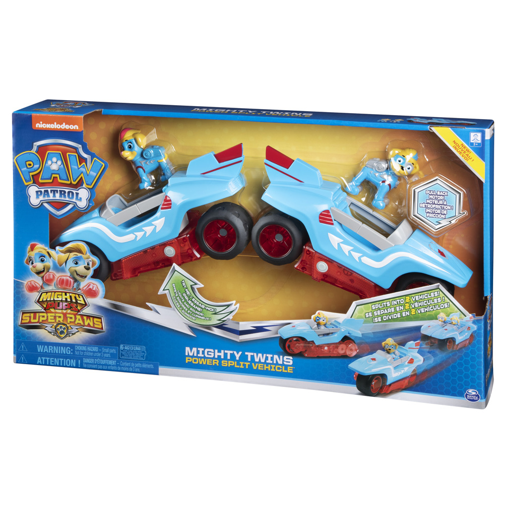 - Krásné vozidlo Tlapkové Patroly, které se dá rozdělit na 2 motorky. Každá má pak natahovací motor a svítí. Sada také obsahuje 2 figurky dvojčat.