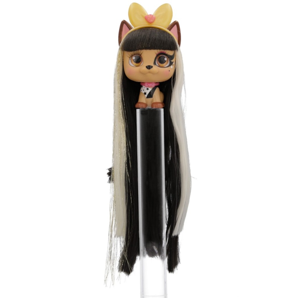 - Objev jednoho ze 7 mazlíčků s krásnými doplňky. Jedná se o překvapení, konkrétní variantu zvířátka nelze zvolit. Balení je ve tvaru zlatého šampónu s neprůhledným obalem, přes který není možné vidět, který z pejsků se uvnitř skrývá 10 překvapení pro vytvoření okouzlujícího účesu se zlatým nádechem. Tato série je exkluzivní také unikátním zpracováním samotných pejsků – skutečné řasy, skleněné oči, zlaté vlasy a nové doplňky.Výška pejska 9,5 cm, délka vlasů až 30 cm.
