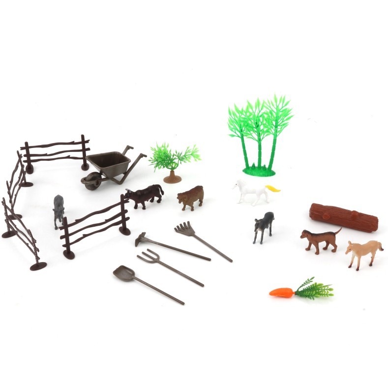 Balení obsahuje 20 figurek, které dětem pomohou hravou formou poznávat různá zvířata zer statku a příslušenství ke každodenní práci.