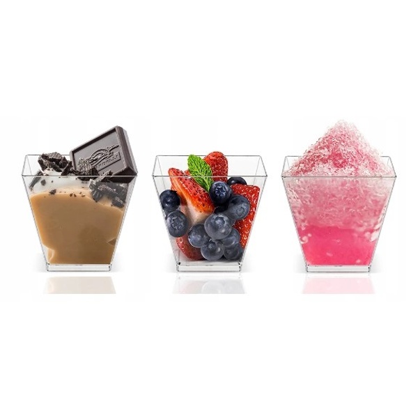 | Čtvercové průhledné kelímky na dezerty Dezertní kelímky z plastu se skvěle hodí na dezerty, tak i na omáčky a … |