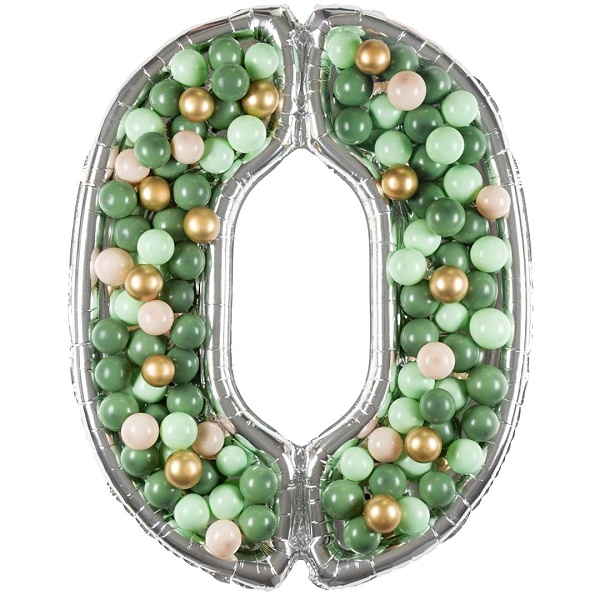Forma na balónky ve tvaru číslice 0 má lesklou, kovovou strukturu, která jí dodává eleganci.