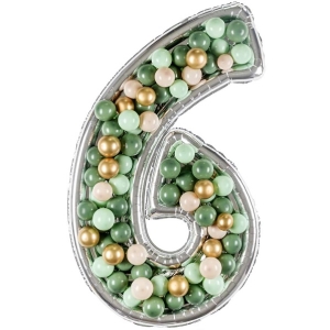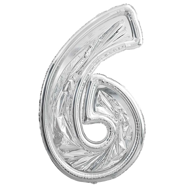 Forma na balónky ve tvaru číslice 6 má lesklou, kovovou strukturu, která jí dodává eleganci.