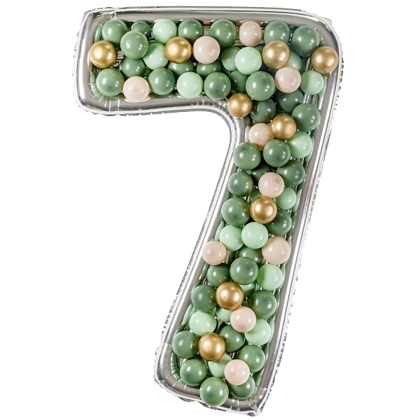 Forma na balónky ve tvaru číslice 7 má lesklou, kovovou strukturu, která jí dodává eleganci.