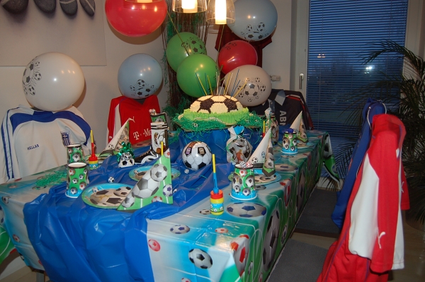 Program pro tento typ oslavy se nabízí sám. Když se sejde parta kluků na fotbalové party, neměl by chybět míč a nějaký ten plácek pro vstřelení branky. Táta může být rozhodčí, maminka hosteska, která vítěznému mužstvu zavěsí na krk medaile. Ostatní rodiče mohou fandit a být v roli diváků. Pokud nemáme příliš protoru pro dvě branky, party je u Vás na zahradě a bojíte se nájezdu malých bojovníků s fotbalovým míčem, vymyslete hry, které tak velký prostor nepotřebují .