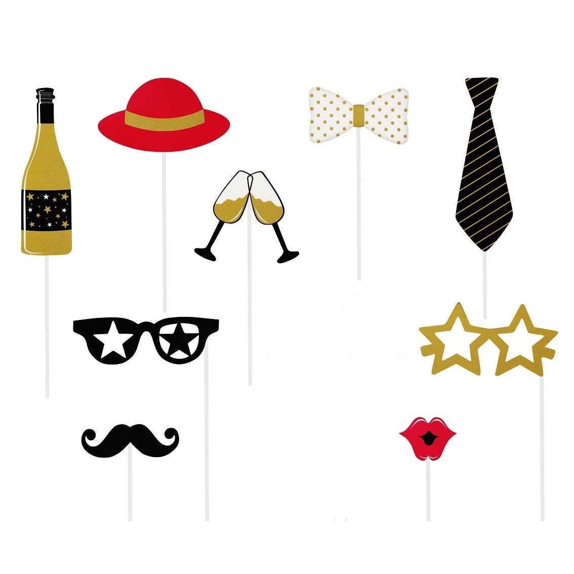 Sada obsahuje rekvizity na focení v barvě zlatá a černá.