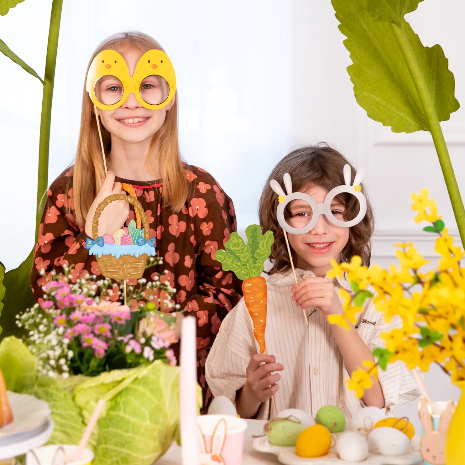 Během pár minut tak připravíte originální fotokoutek na Velikonoce bez složité instalace – stačí je slepit, rozdat hostům a začít fotit. Díky kompaktní velikosti (rekvizity mají výšku přibližně od 5,5 do 20,5 cm, tyčky okolo 20 cm) se pohodlně drží i menším dětem a jsou ideální na rodinné velikonoční oslavy, dětské párty nebo tematické školní akce.