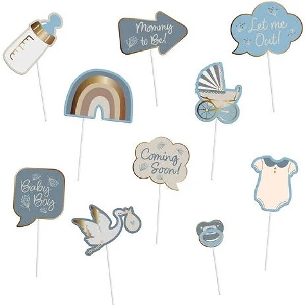 Rekvizity do fotokoutku Baby boy, se kterými se pobavíte, vytvoříte zábavné fotky a především si z fotografií z oslavy vytvoříte nezapomenutelnou památku.