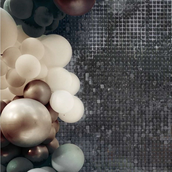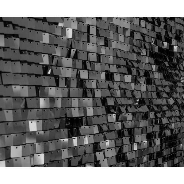 Dekorativní flitrový černý panel na černém pozadí. Dá se použít jako příležitostná fotostěna, skvěle se bude hodit k ostatním balónkům a girlandám.
