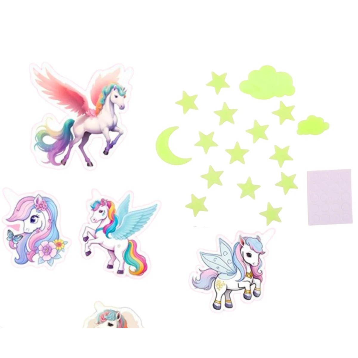 Zářící samolepky na zeď nebo strop s oblíbenými jednorožci a hvězdami