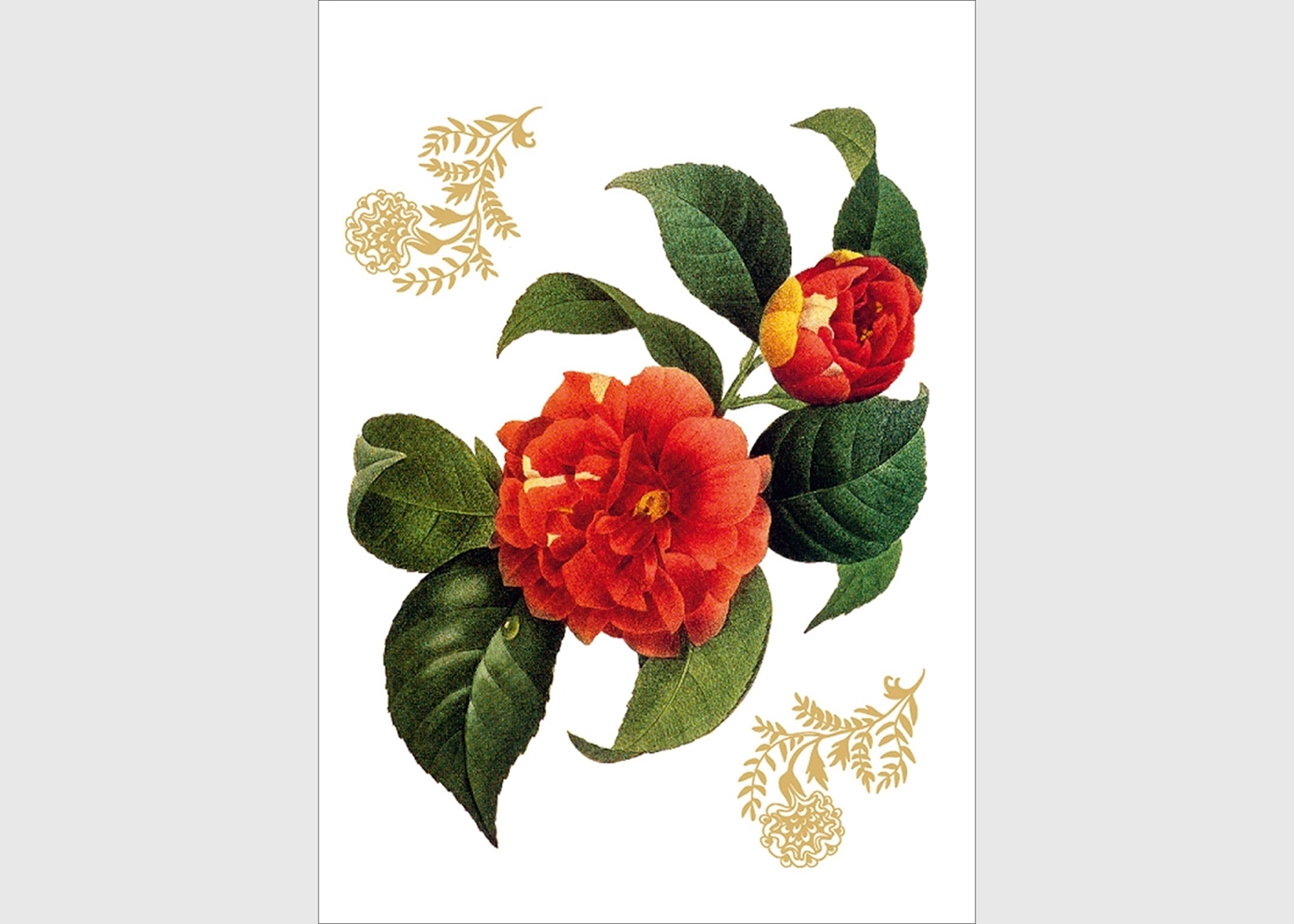Samolepka na zeď Červené Květy a Zlaté Elementy | 65 x 85 cm | F 0457