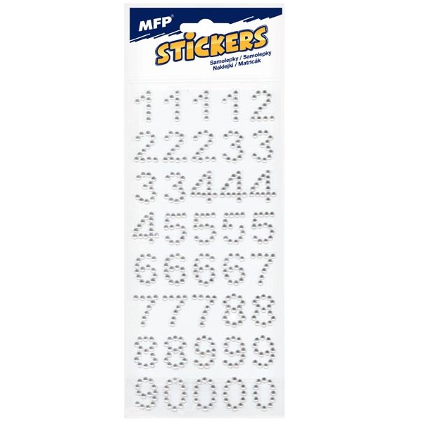 Samolepky ze stříbrných třpytivých kamínků ve tvaru číslic