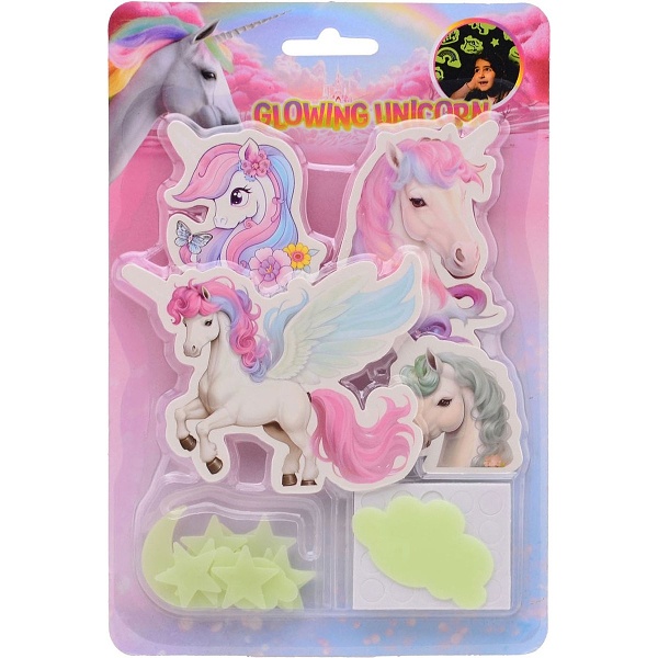 Vytvořte svým malým obdivovatelům bájuných jednorožců ještě útulnější a zábavnější pokojíček pomocí těchto samolepek na zeď s krásnými obrázky, které svítí ve tmě.