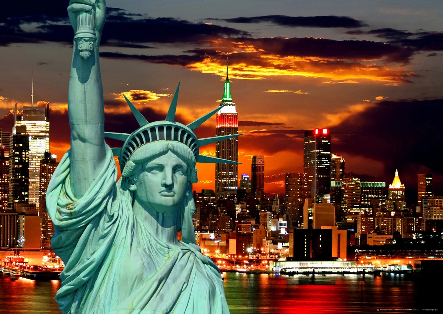 Vliesová fototapeta na zed' Socha svobody při západu slunce | 155 x 110 cm | FTNM 2612
