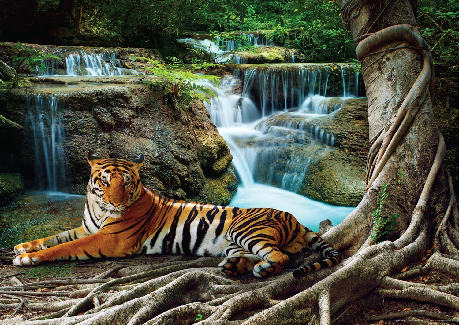 Vliesová fototapeta na zed' Tygr u vodopádů | 155 x 110 cm | FTNM 2652