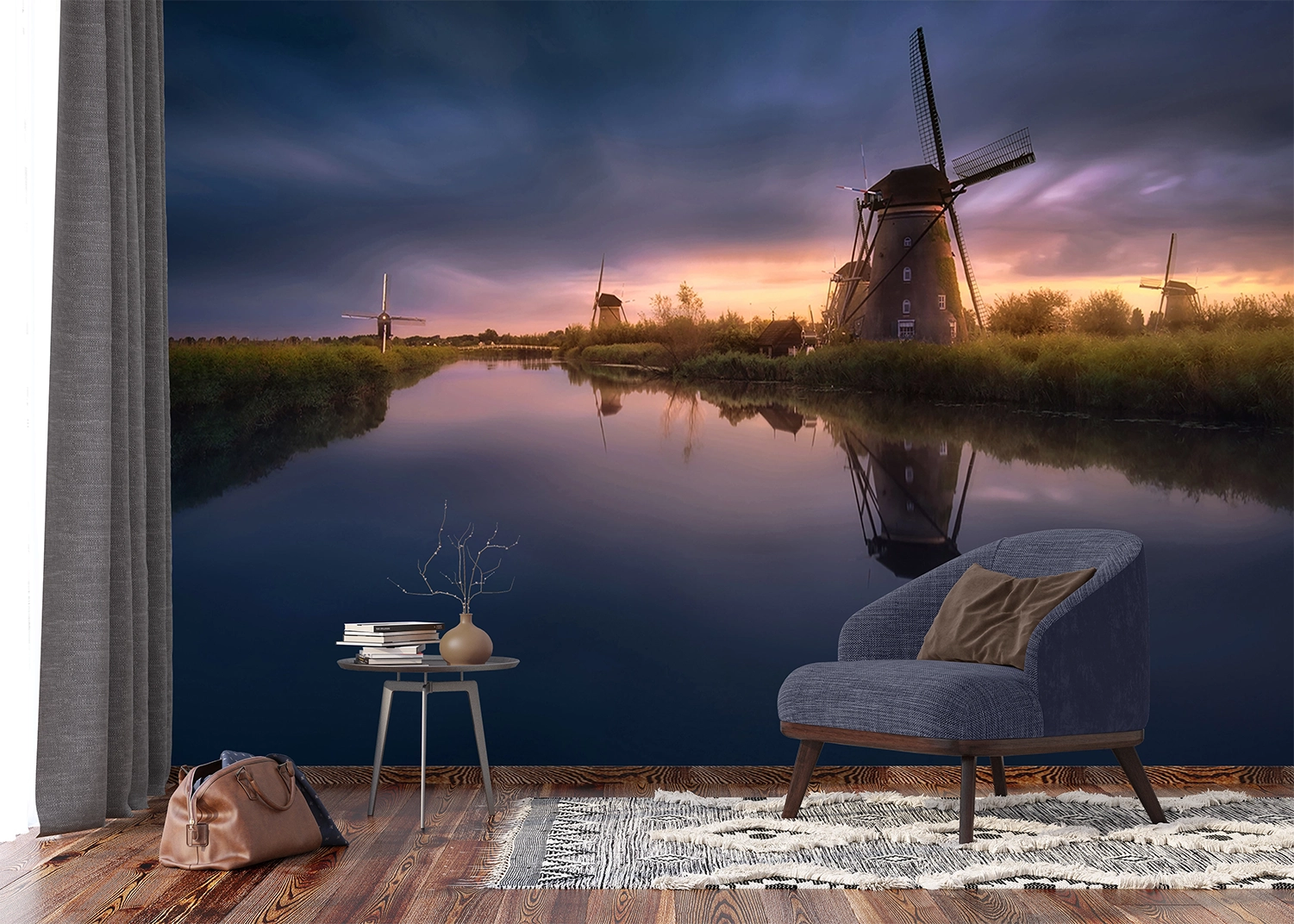 Vliesová fototapeta na zed' Větrné mlýny Kinderdijk-Elshout | 375 x 270 cm | FTNXXL 3022