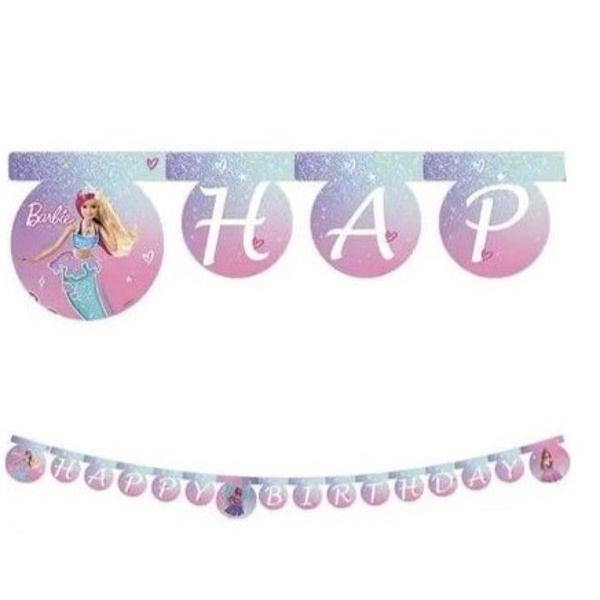 Narozeninový banner s nápisem Happy Birthday Barbie.