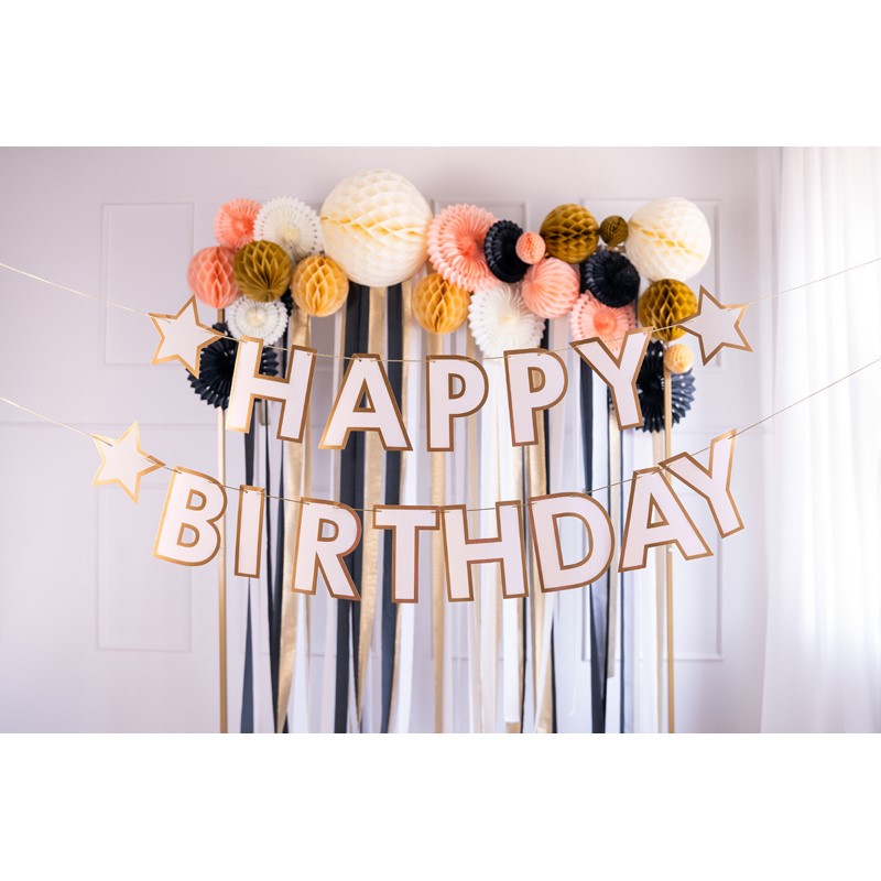 Banner je v bílo-zlaté barvě a je vhodný pro výzdobu jakékoliv narozeninové oslavy.