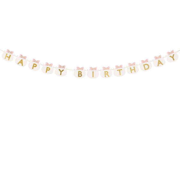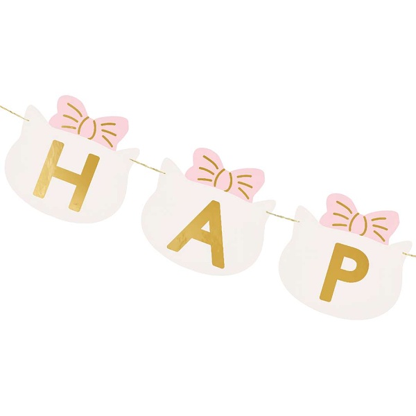 Narozeninový banner krémové barvy se zlatým nápisem Happy Birthday vám doplní výzdobu narozeninové oslavy s oblíbenými kočičkami.