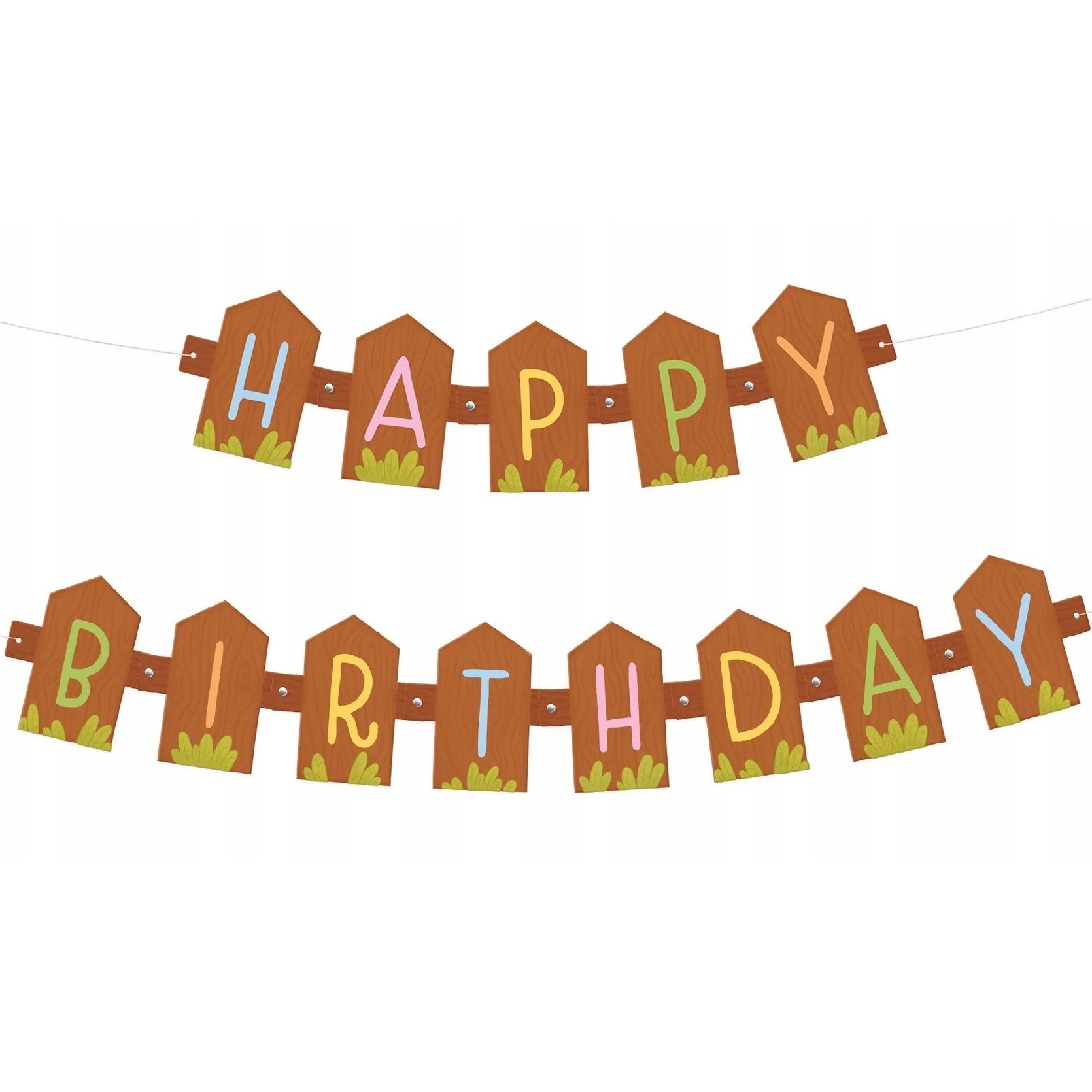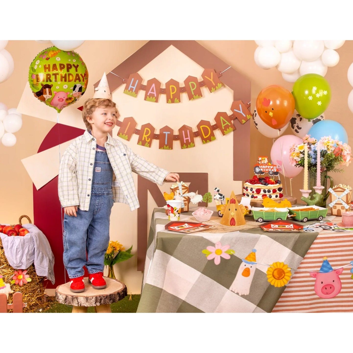 Narozeninový banner s nápisem Happy Birthday pro malého fanouška zvířátek na statku, jako jsou kravičky, koníci, prasata a ovečky. Bude se skvěle hodit na oslavu narozenin pro holky i kluky.