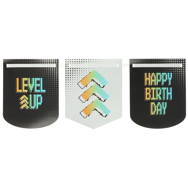 Vlajky mají střídavě zaoblený a špičatý tvar. Černé zaoblené vlajky obsahují texty jako Level Up, Let's Go a Happy Birthday. Symbol Level Up je na stříbrných špičatých vlajkách. Vlajky lze posouvat tam a zpět po bílé stuze.