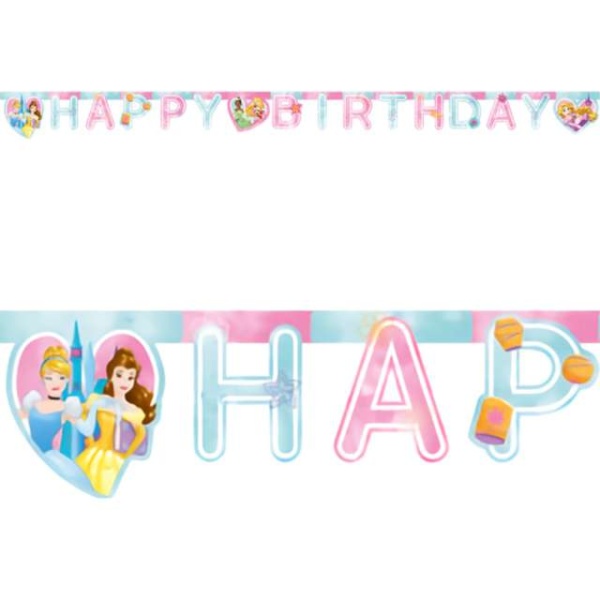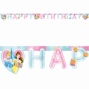 Krásný narozeninový banner v pastelových barvách s nápisem Happy Birthday a obrázky princezen je ten pravý doplněk výzdoby na tématickou párty Princess Disney. Potěší jistě všechny malé obdivovatelky princezen od Disneyho.