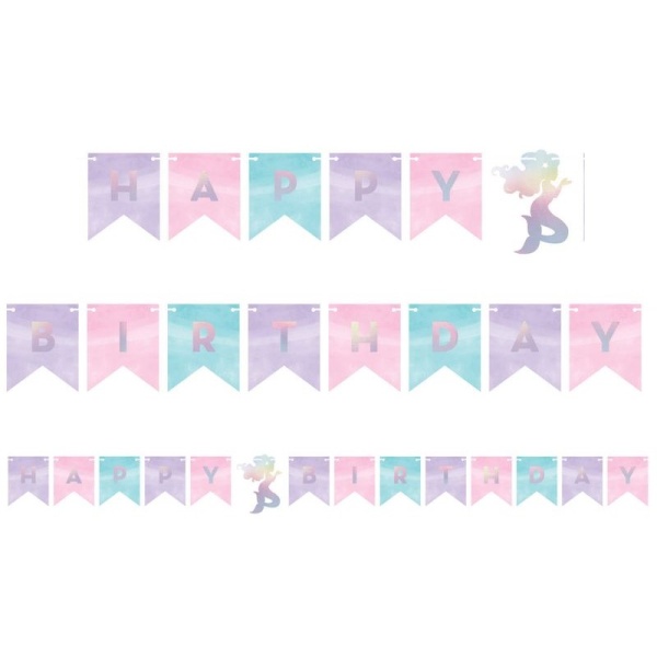 Girlanda třpytivá s nápisem Happy Birthday a mořskou pannou uprostřed na narozeninové párty jako krásná dekorace nesmí chybět.