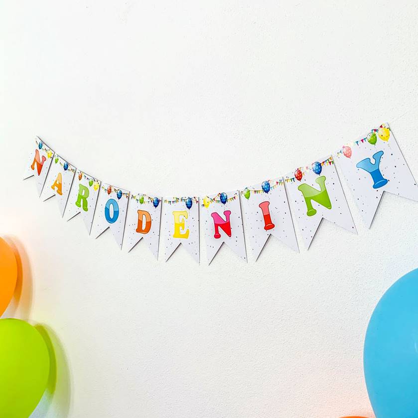 Narozeninová party bez girlandy? Bez ní není nikdy dokonalá výzdoba jak se patří na oslavu narozenin stejně jako balónky.
