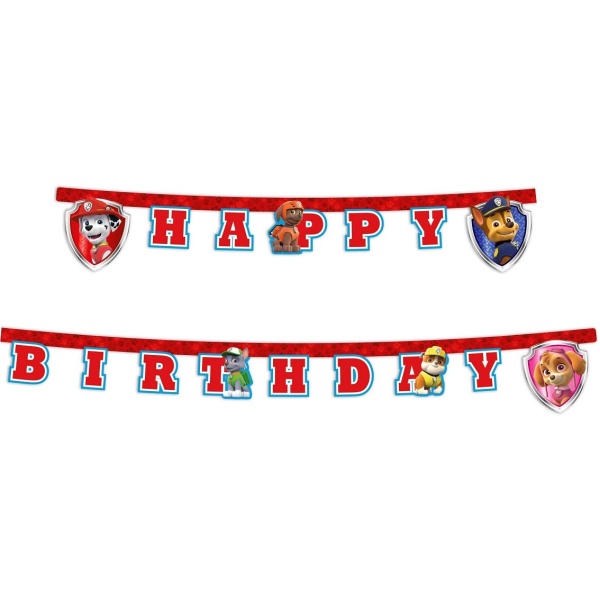 Narozeninová girlanda s nápisem Happy Birthday na narozeninovou oslavu s oblíbenou Tlapkovou Patrolou.