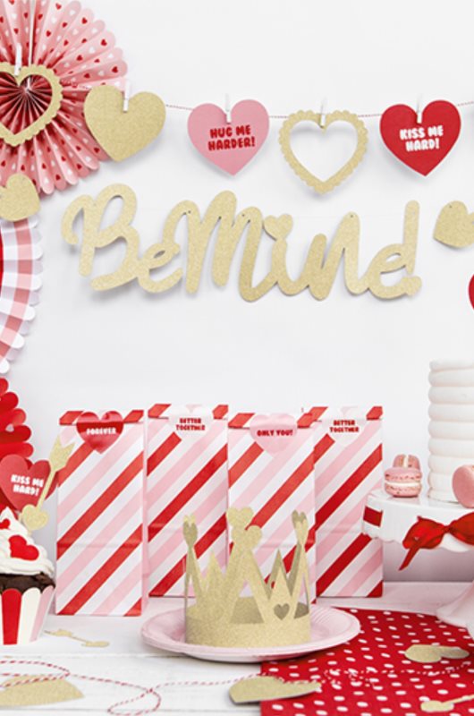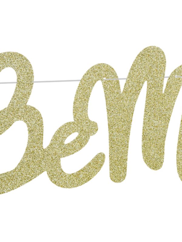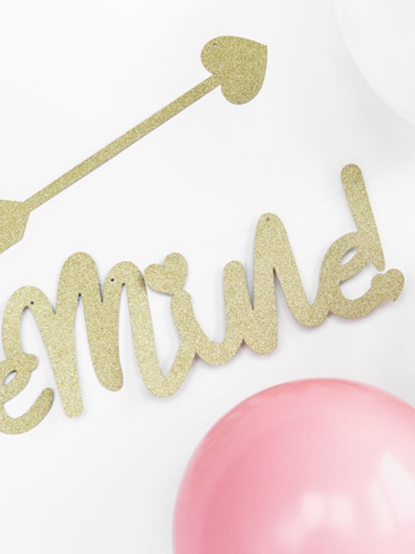 Banner Sweet Love - Be mine!, třpytivě zlatý, vyrobte si sami, sada obsahuje nápis Be mine!, 2 šipky a cca 2 m vlasce, rozměry po sestavení: výška cca 11,5 cm, délka cca 90 cm.